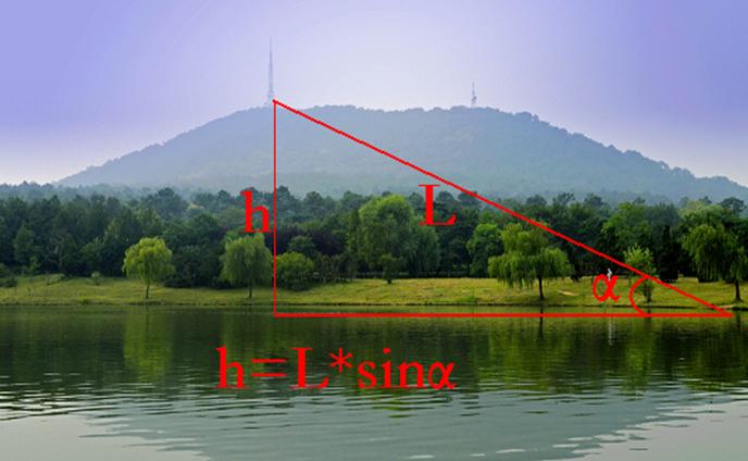 倾角传感器典型应用案例分析 一、间接测量 对山、建筑物、树木等物体的高度进行测量也能使倾斜传感器得到最充分的利用。通过倾斜传感器的角度测量往往与通过激光测距仪的距离测量同时使用。该测量方式可被很好地利用在与建筑有关的行业或需要估测某块区域内树木体积的应用场合中。例如以我们公司(合肥硕锋科技)旁边的合肥大蜀山为例,构建如下三角形,可以测量观测点到山顶的距离,间接的计算出大蜀山的高度h = L*sinα 。