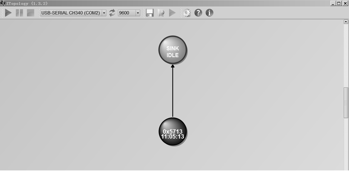 读取温度需要用到节点的zigbee短地址,短地址标注在产品的侧面,获取短地址的另外一个方法是查看拓扑图,将1个终端与协调器相连接,打开软件,如下图所示: